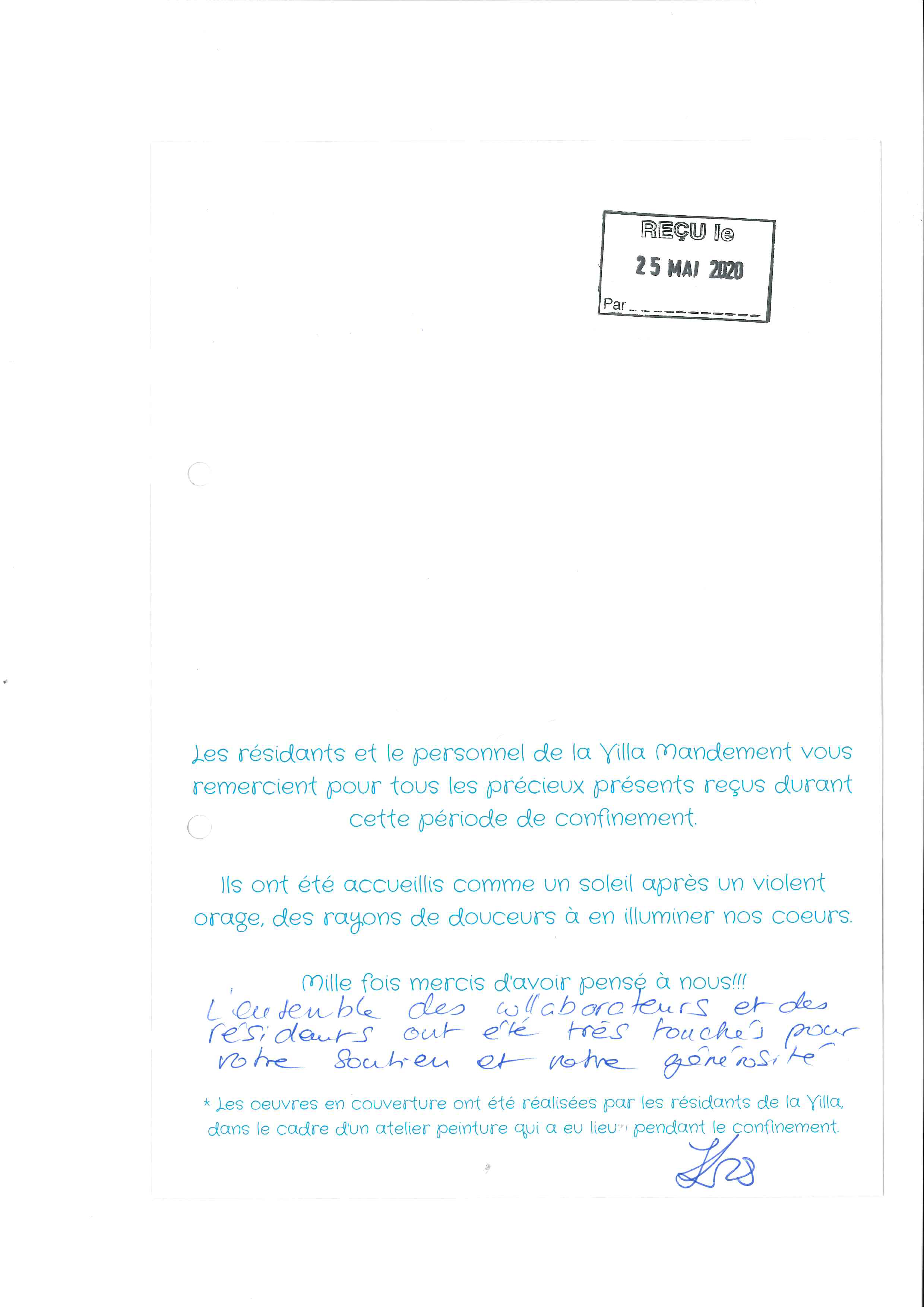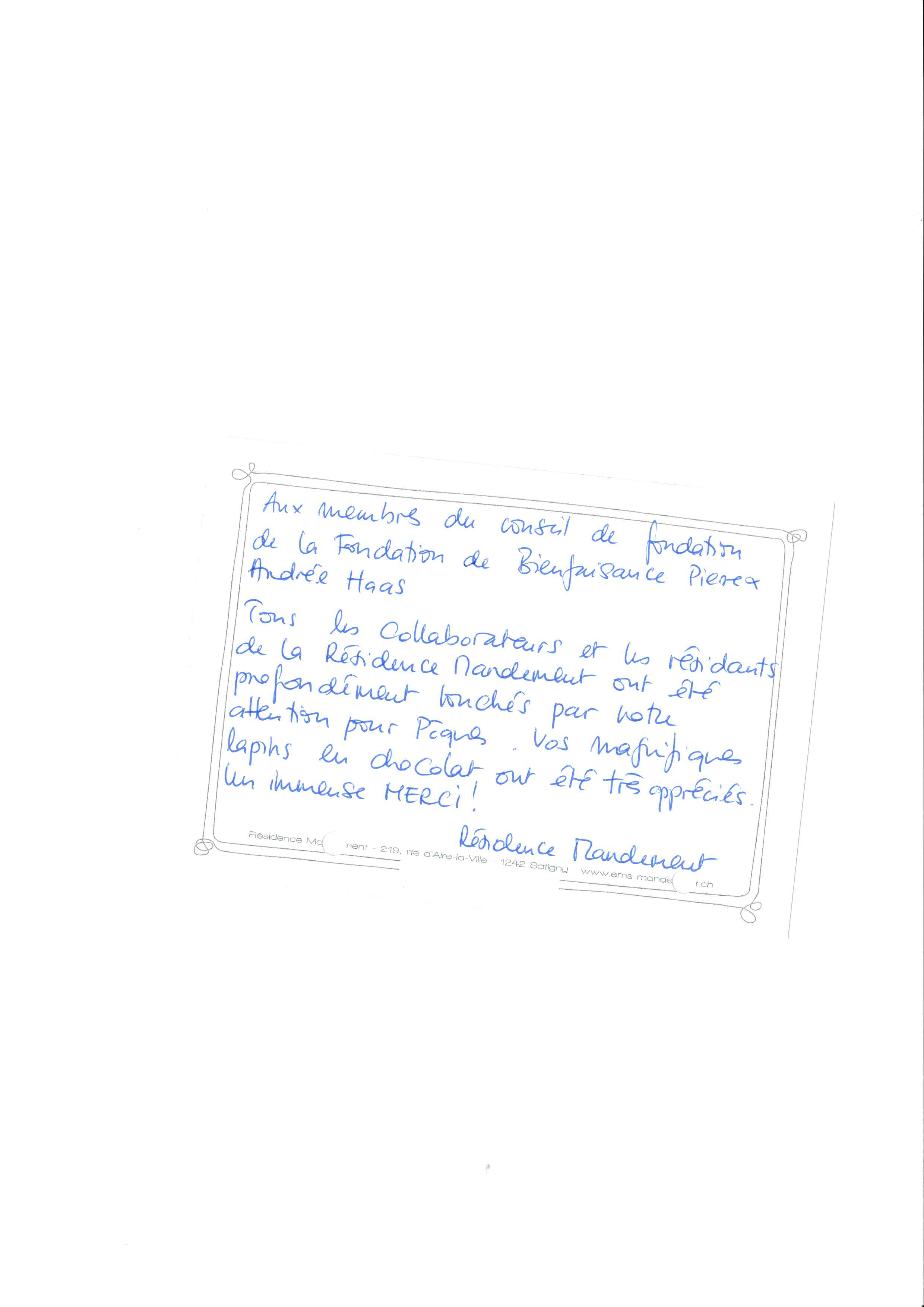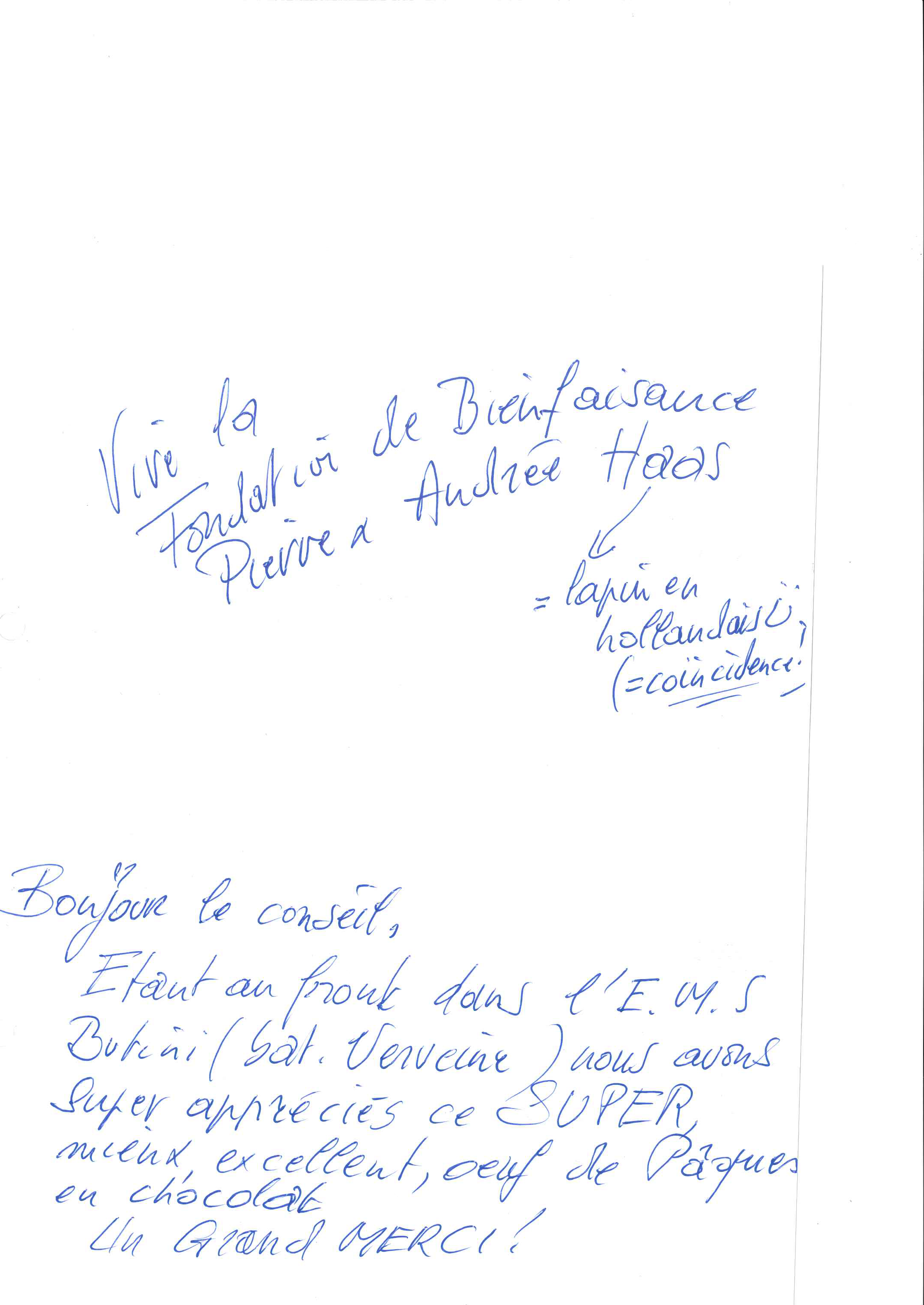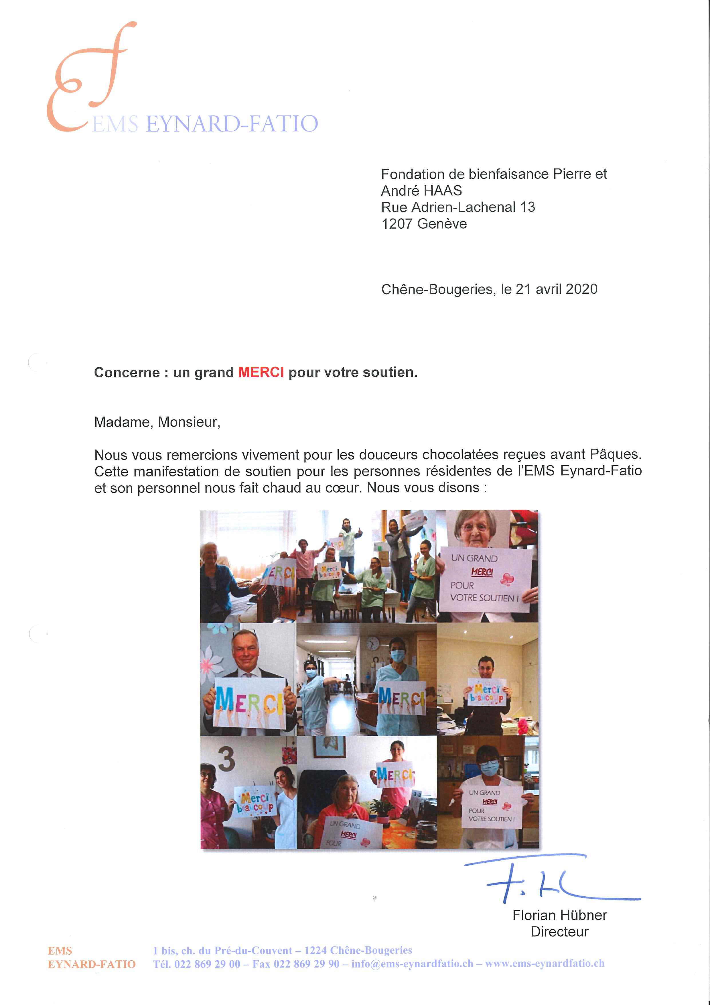 SUJETS DE PÂQUES POUR LES EMS DU CANTON DE GENÈVE / A la Une / Par hadrienmury@yahoo.fr Des remerciements qui nous font « chaud au cœur »