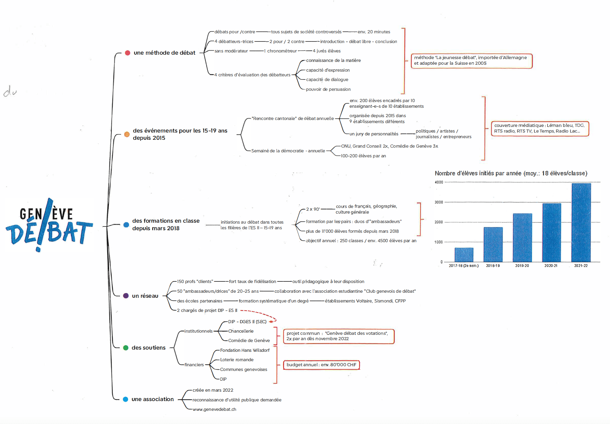 Crée en 2018, l’association Genève Débat s’engage à promouvoir l’art du débat au sein des établissements genevois du Secondaire II, tels que les Collèges, les Écoles de Culture Générale, l’École de Commerce, les Centres de Formation Professionnelle et Préprofessionnelle. Ce projet vise à sensibiliser les jeunes à l’importance de savoir s’exprimer en public tout en développant leur esprit critique à travers des débats contradictoires.